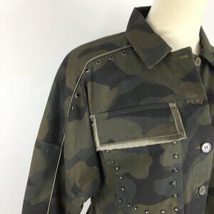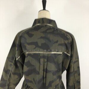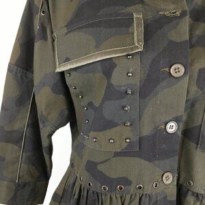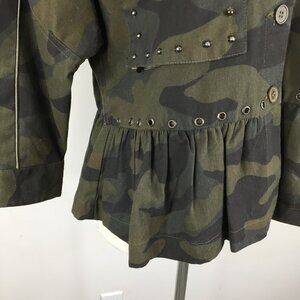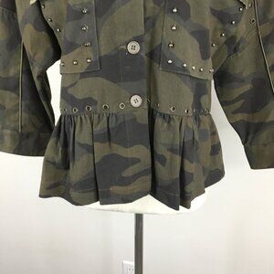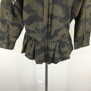 JOIE Green Mix Camo Print SAMIA Dolman Sleeve Studded Ruffle Peplum Hem Jacket