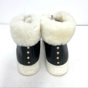 JOIE Handan Shearling High-Top Fur Cuff Leather Platform Sneakers in Black Sz 5