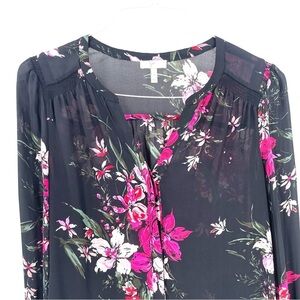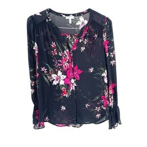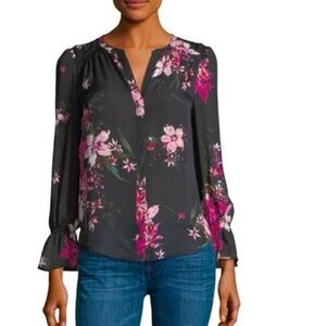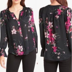 JOIE Keno Silk Pink Floral Black Button Up Long Sleeve Blouse Top