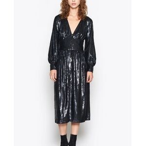 JOIE Kyria B Sequin Midi Dress In Black Caviar size 0