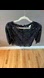 Elegant black lace top. Features intricate lace design. Three-quarter sleeves. Size XS
