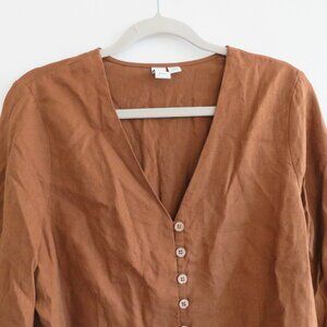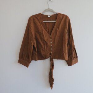 JOIE Linen Blend Cropped Button Tie Front Blouse Top in Brown Boho Cottage Sz M