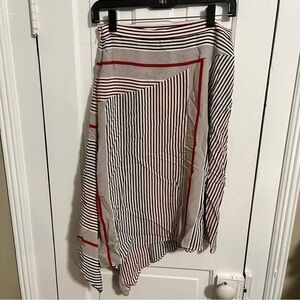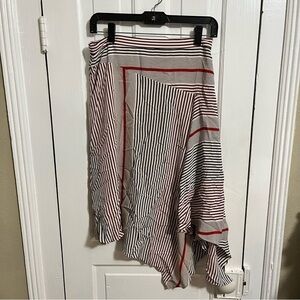 JOIE Moni Women's Size 2 Striped Asymmetrical Hemline Midi Skirt Cream Red S1