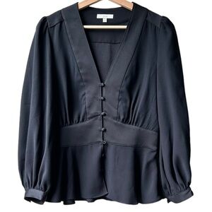 JOIE Monisha Black Shawl Collar Peplum Blouse Sz M