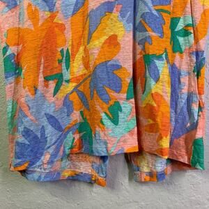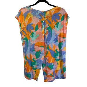 JOIE Multi-Color Tropical Print Linen Cap Sleeve Back Button Down Top Size Med