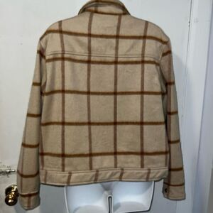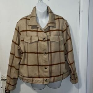 JOIE Neutral Tan and Brown Plaid Crop Shacket-L