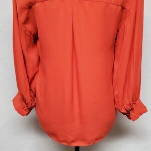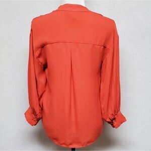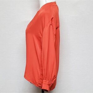 JOIE Ninarika Desert Rose Silk V-neck Hi-low Pleated Long Sleeve Blouse Small