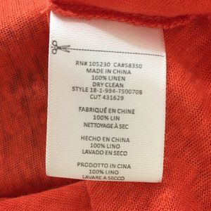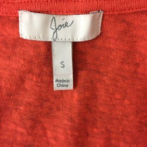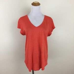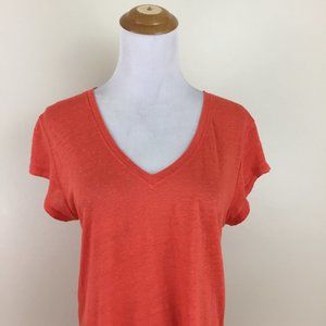 JOIE Orange 100% Linen Short Sleeve V Neck Tee Shirt Top