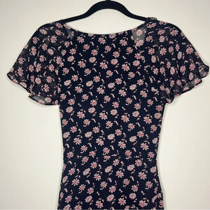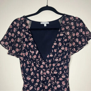 JOIE Orita 100% Silk Floral Ruffles Surplice Midi Dress