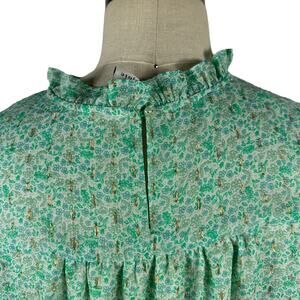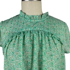 JOIE Pastel Green Cap Sleeve Metallic Floral Popover Blouse Women's XL Top