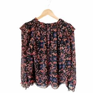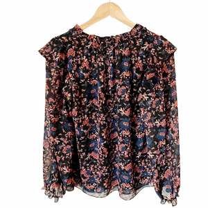 JOIE Peasant Floral Silky Blouse Black Red Gold Thread Long Sleeves Ruffles
