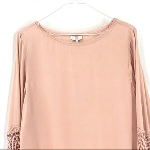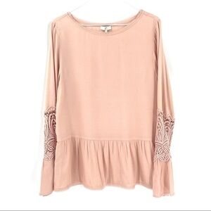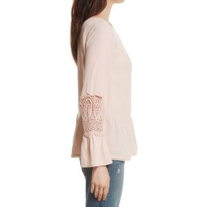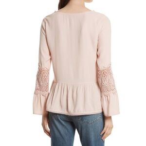 JOIE Pink Emelda Bell Sleeve Lace Peplum Blouse