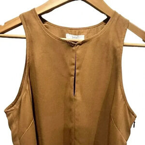 JOIE Puck Tie Waist Lined Keyhole Crepe Mini Dress in Oak Size S