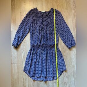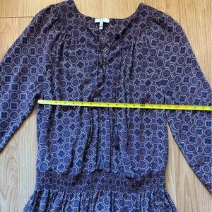 JOIE Red Blue Burnt Currant Medallion Print Lace-Up Blouson Silk Dress