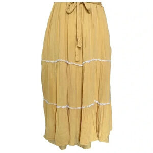 JOIE | Revolve Goldenrod Yellow Embroidered Tiered Boho Maxi Dress Size 12