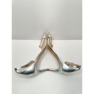 JOIE Sandals Womens Size 8.5 Silver Leather Ankle Strap Maisie Open Toe Heels