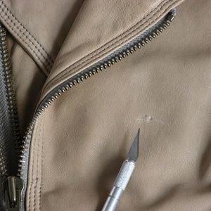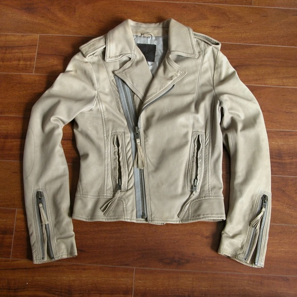 JOIE Sexy Beige Leather Moto Jacket XS. Retails There are some visible marks /stains throughout the jacket from use. SOLD AS IS WITH STAINS. See close-up pics There are no bad smells and no visible holes. We have made no attempt to have the jacket professionally spot cleaned. Aside from the marks, the buttery soft leather jacket is in overall good condition with a lot wear left in it .The Joie jacket measures 16" armpit to armpit & 22" top to bottom. Each sleeve is 23" from shoulder to end. 4Questions, please ask. Thx 4 looking!#P-16