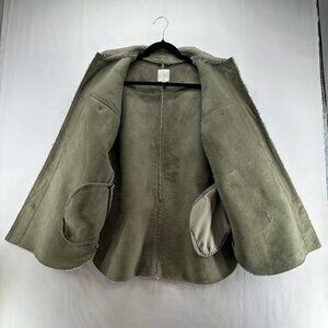 JOIE Shirt Jacket Womens M Sherpa Fleece Suede Lined Button Front Gray/Green