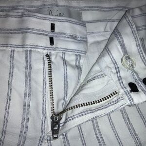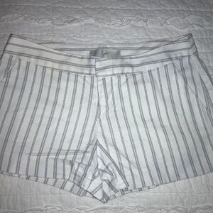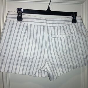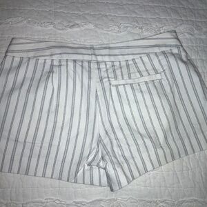 JOIE Shorts Size 2 White Gray Stripe in 98%Cotton and 2% Spandex for Stretch Made In U.S.A. Front Slash Pockets and Back Pockets too. Chino Style with wide waist band, Front Zipper. In Very Good pre-loved condition.