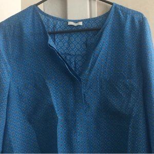 JOIE Silk Blue Blouse Tunic Turquoise Geometric Long Sleeves Top shirt Sz Small