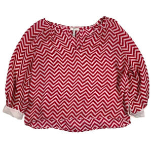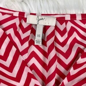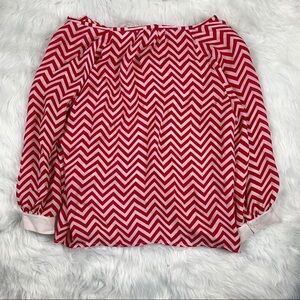 Soft and elegant, this Joie blouse features a pink and white chevron pattern in luxurious 100% silk. Designed with buttoned sleeves and a relaxed fit, it’s perfect for dressing up or down.