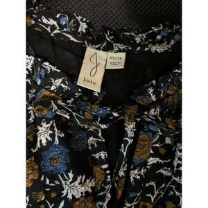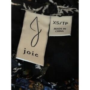 JOIE Swiss Dot Floral Print Ruffled Split Tie Neck Blouse Sz XS