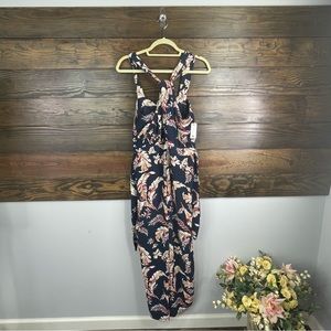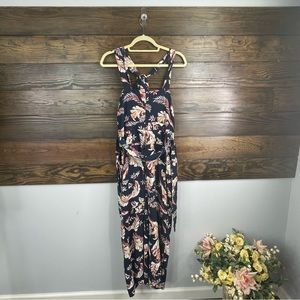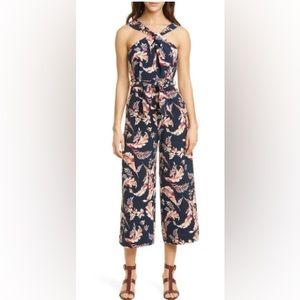 JOIE TRENITY COTTON PRINTED SLEEVELESS CROPPED WIDE-LEG JUMPSUIT IN DEEP SEA