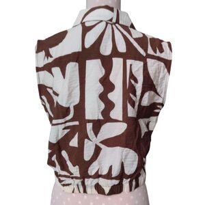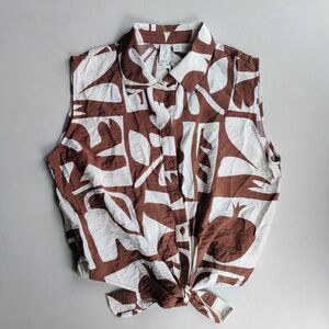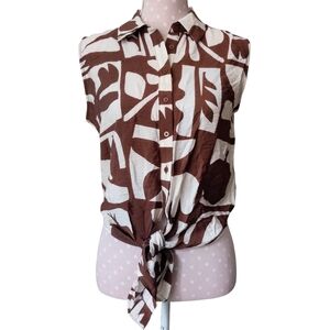 JOIE Tie-Front Top S Sleeveless Crop Button Abstract Floral Brown Cream Women's Size Small