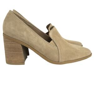 JOIE Wevenly Suede Slip On Loafer Style Shoe 7.5 Pump Heel Block Heel Neutral