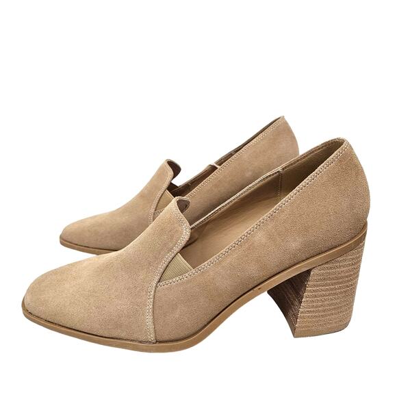 JOIE Wevenly Tan Suede Loafer Block Heels Closed Toe Shoe Women's Size 9 1/2 NWT