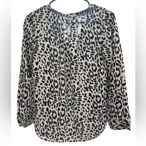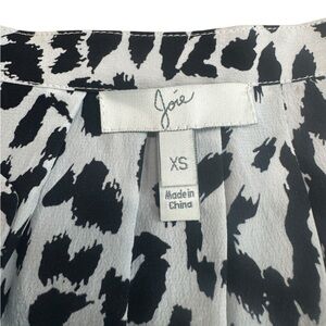 JOIE Black/White Long Sleeve V-Neck Printed Blouse 100% Silk Size XS