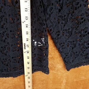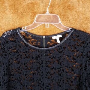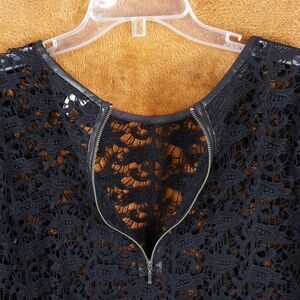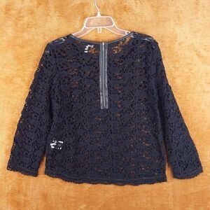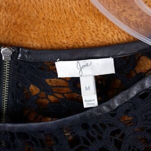 JOIE Womens Top Medium Black Crochet Lace Faux Leather Trim Zip Back Knit