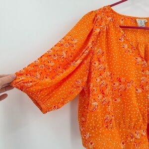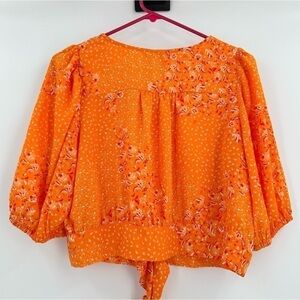 JOIE Women’s V-Neck Orange/Pink Floral Balloon Sleeve Crop Top w/Tie Size Large