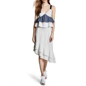 JOIE Yenene Striped Asymmetric-Hem Midi Skirt in Porcelain Cream Grey Size 2