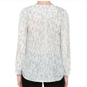 100% silk Dry clean only Pleat detail on shoulders and back Elasticized sleeve cuffs Shirttail hem