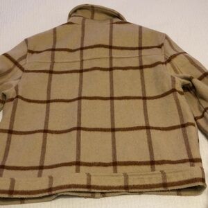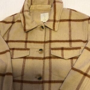 JOIE tan and brown plaid button down cropped jacket. Size L