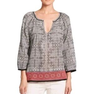 JOIE Cherree Split Neck Embroidered Hem Pleated