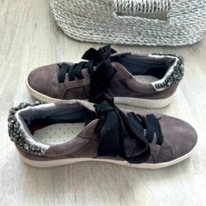 JOIE DARENA Suede Grey Crystal Sneakers SZ 37.5