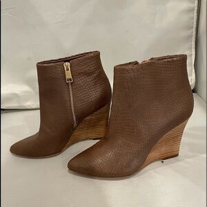 JOIE Jalena Snake Embossed Wedge Pointed Toe Ankle Booties