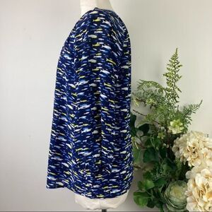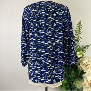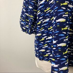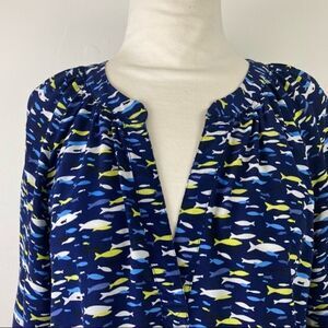 JOIE fish 100% silk blouse small work office vacation navy white blue print