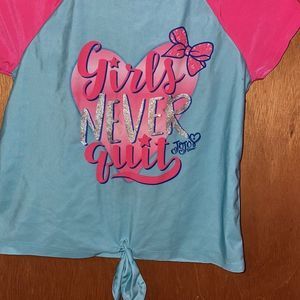 •JOJO SIWA• rash guard size 10/12 “GIRLS NEVER QUIT” quote on front. And tie knot front. Pink sleeves and blue body. Super adorable and perfect for outside or swim day.
