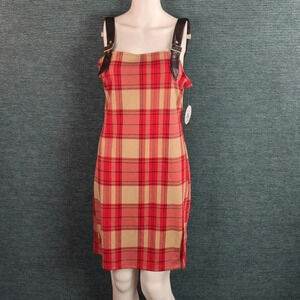 JOLIE & JOY Plaid Dress With Faux Leather Buckle Straps NWT!