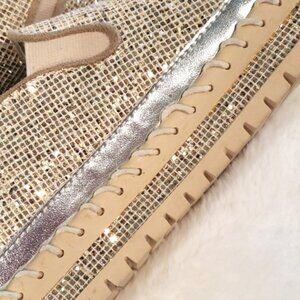 Beautiful gold glitter platform loafers/sneakers. An exquisite platform loafer designed for ladies who pursue fashion. Dress up or wear casual.