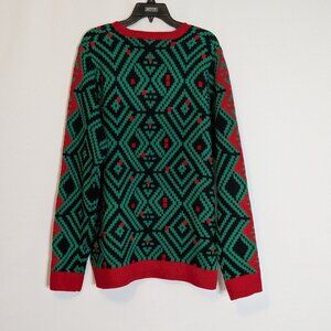 JOLLY SWEATER Red/Green Pullover Christmas Holiday Sweater; Llama; Size Men L