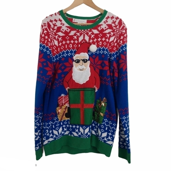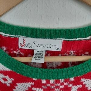 JOLLY SWEATERS Men's Ugly Christmas Sweater Size M Santa Pouch Pocket for Drink.