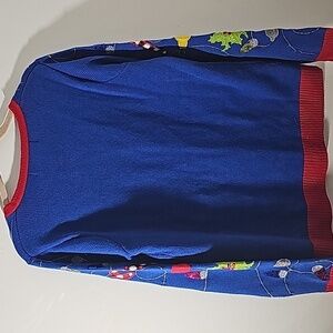 red and blue, with multiple colors in sequins. Size medium. Pit to pit flat measurement is 22". The sleeves are 22.5". The top to bottom length is about 28". Consider making a bundle and get an even better offer.