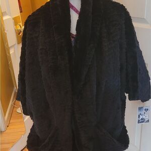 This fun jacket is extremely stylish! It features a shawl collar that can be worn up or down. Raglan sleeves that measure 16". The length is 26". Pit to pit is 22". It has very deep pockets. (Pic #4) Even though it is marked as an XL, it fits me and I'm between a med & large. NWT.
