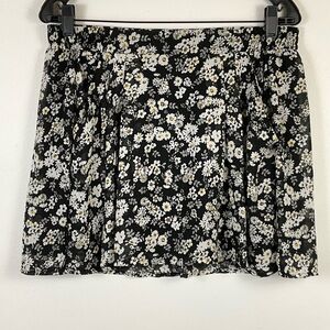 JOLT Black and White Floral Mini Skirt Pockets Elastic Back Lined Women’s Medium
