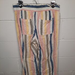 JOLT (Medium) Wide Leg Linen Striped Pants Colorful Multicolor