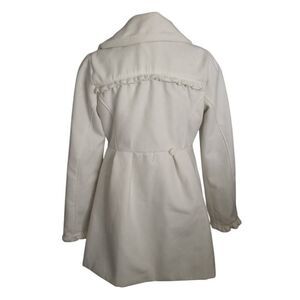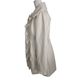 JOLT OFF WHITE RUFFLE COAT SZ.L GUC. GORGEOUS COAT IN GOOD USED CONDITION. MISSING 2 BUTTONS AND A SPOT ON SLEEVE. ALL FLAWS SHOWN IN PICS.